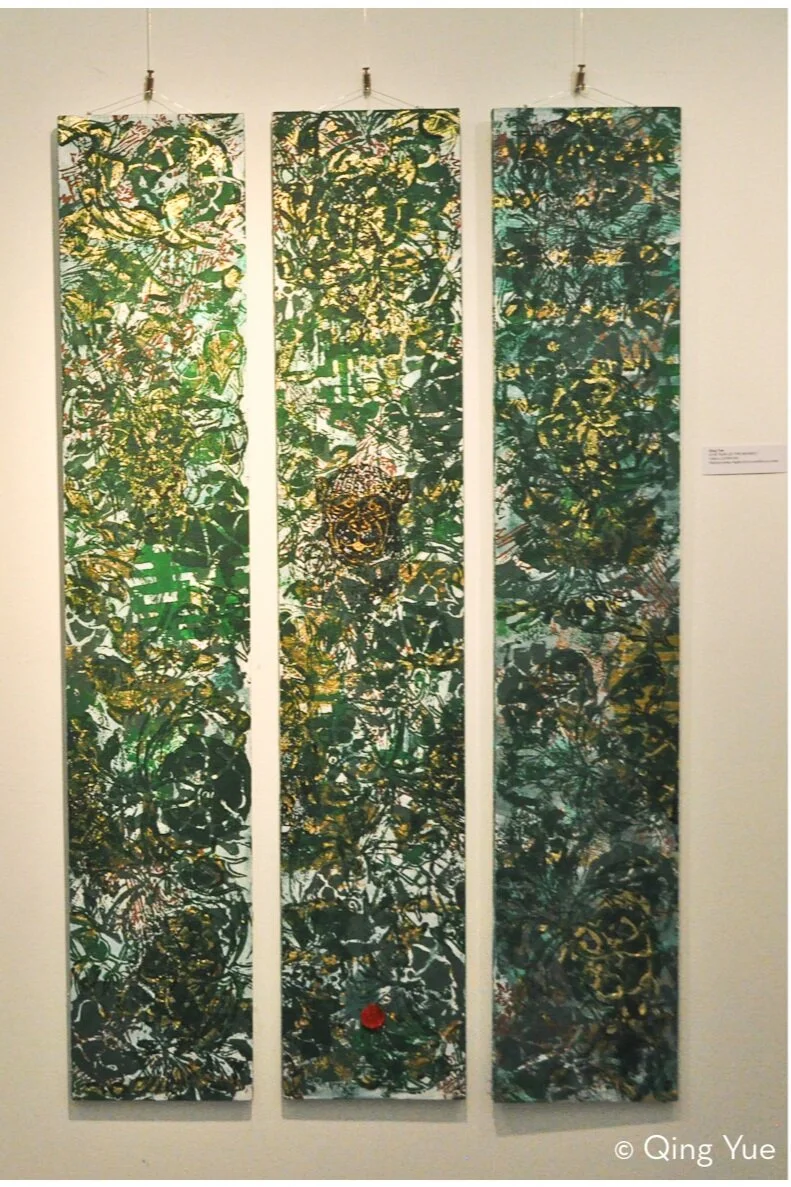 Qing Yue: I miei progetti personali nascono – come ormai avrà capito! – dalla necessità di esprimere le mie doppie radici e di fare da ponte tra le due culture. Naturalmente, i miei soggetti nascono da raffigurazioni arcaiche cinesi, che poi seguono l’iter della rielaborazione pittorica. Quandoho un’idea nuova, la propongo ai miei figli, i miei fidati consiglieri, che m’hanno sempre sostenuta dandomi degli ottimi consigli e critiche utili. Poi, faccio parte dell’associazione no profit “Art Projects Association” insieme ad amici artisti di cui ho tanta stima e coi quali lavoro molto bene su progetti di scambi artistici internazionali: Raffaella Busdon, Patrizia Bigarella e Franco Rosso.
